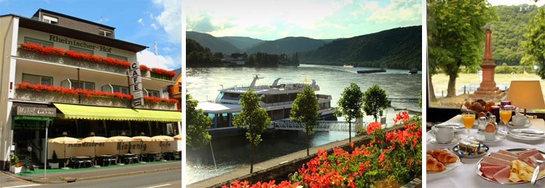 Unser familiengeführtes Hotel Garni Rheinischer Hof liegt im Zentrum des alten Wallfahrtsortes Kamp-Bornhofen am Mittelrhein zwischen Rüdesheim und Koblenz. Das Hotel liegt am Rheinufer und bietet von den Hotelzimmern und der Terrasse einen wunderschönen Blick auf den Rhein.